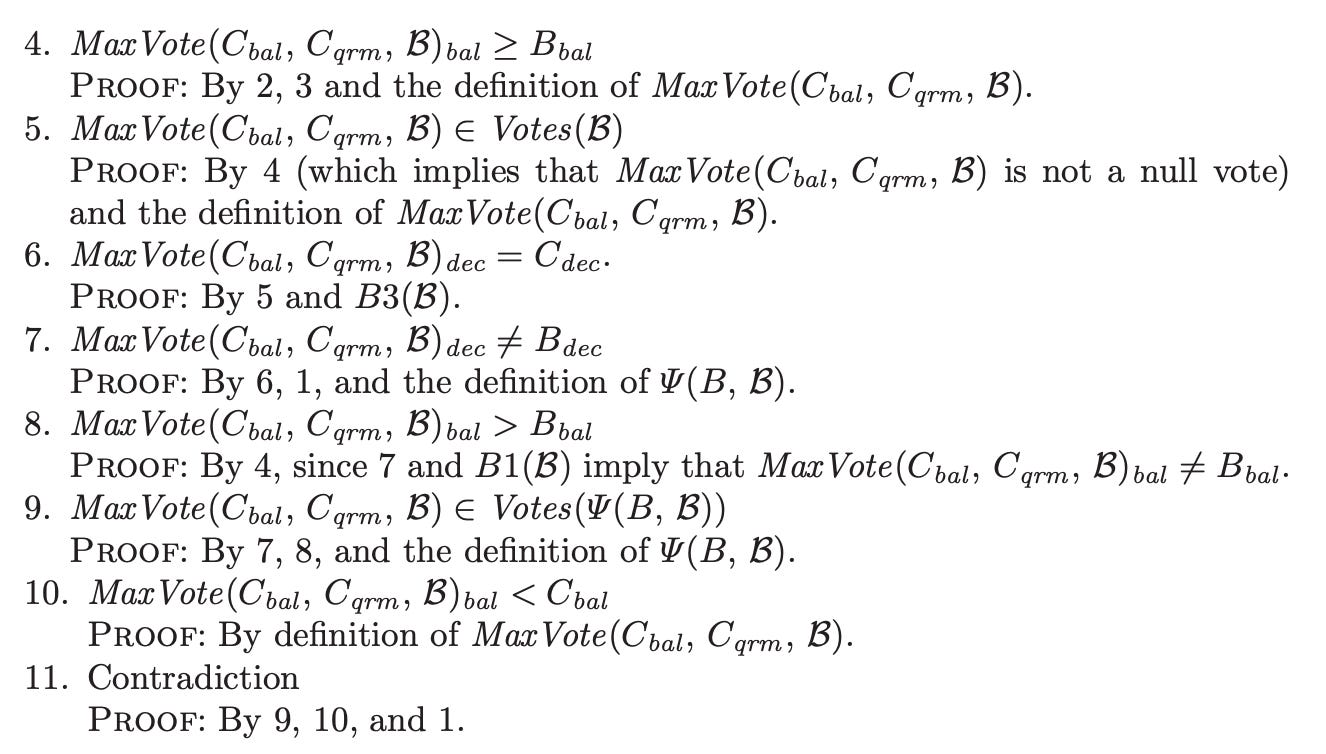 One touch I appreciated is how he added multiple proofs with different parameters for his quorum algorithm, almost as if it were a unit test suite: