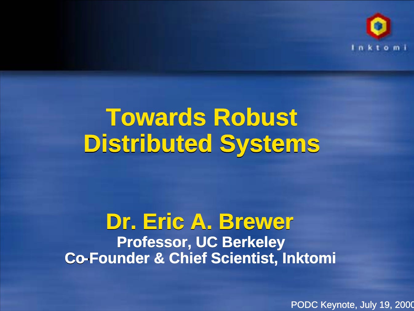In July 2000, Eric Brewer gave a keynote called “Towards Robust Distributed Systems”, introducing the CAP theorem.
