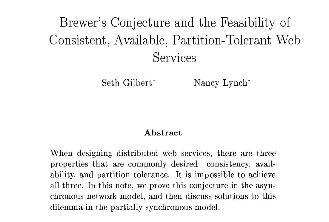 In 2002, Seth Gilbert and Nancy Lynch published a formal proof of Brewer’s idea.